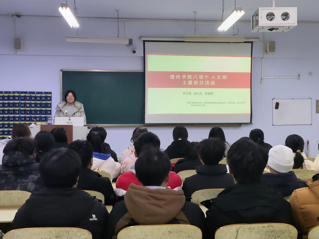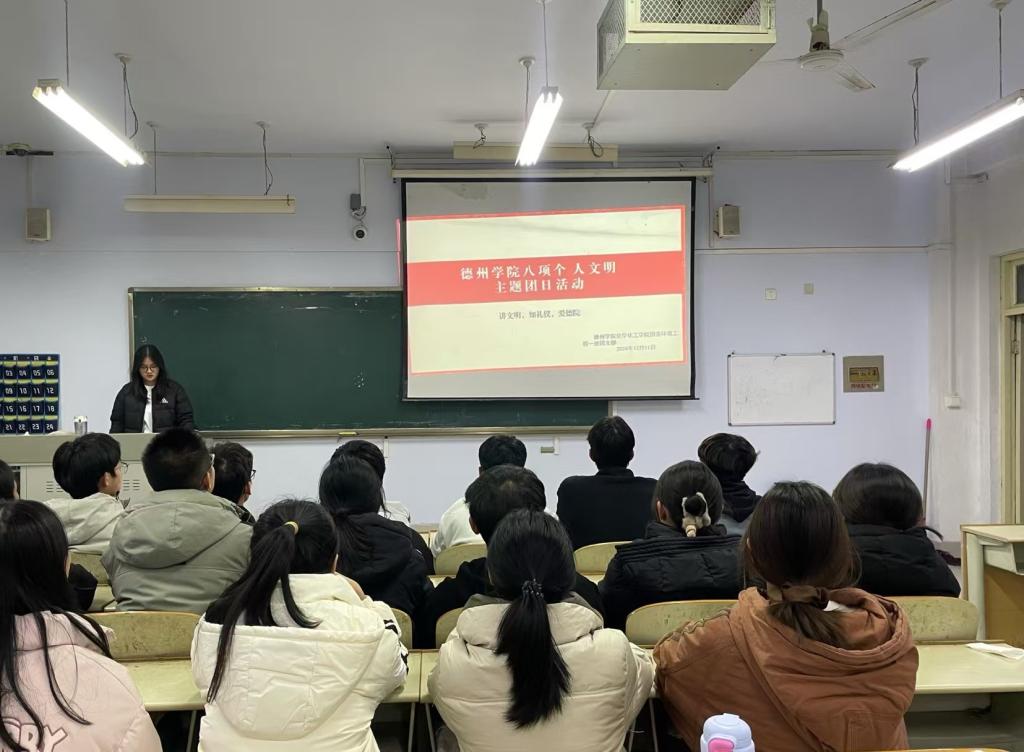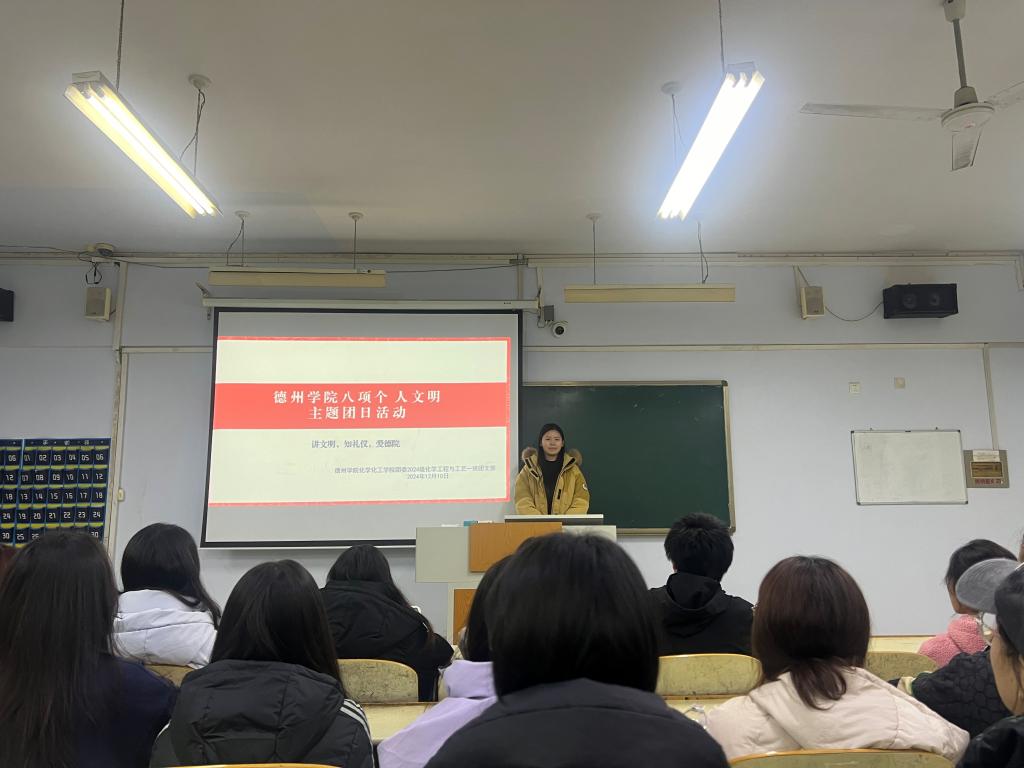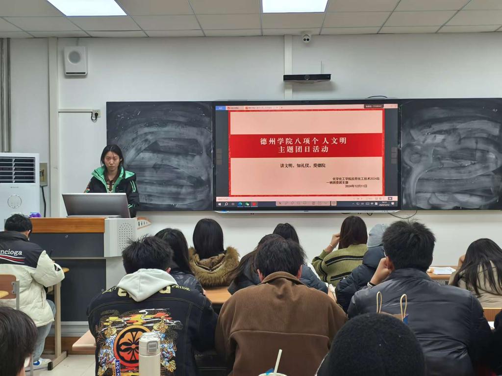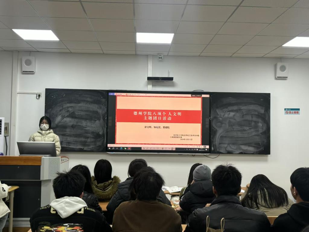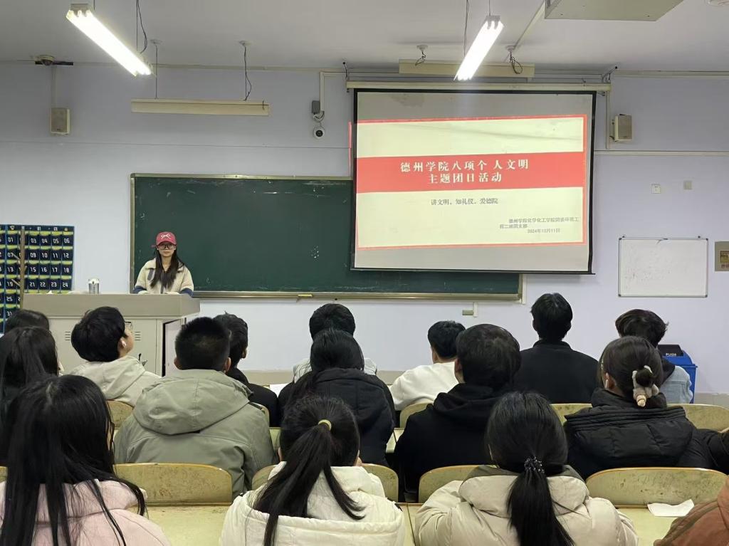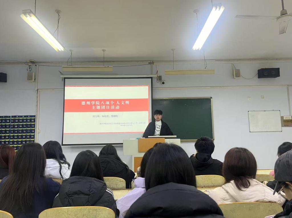 为贯彻落实党的二十届三中全会精神,加强我院大学生思政工作,强化文明养成与校风学风建设。12月10日,国产日韩欧美小视频于求实楼开展“八项个人文明”主题团日活动。各班团支书主持,国产日韩欧美小视频全体学生参加。