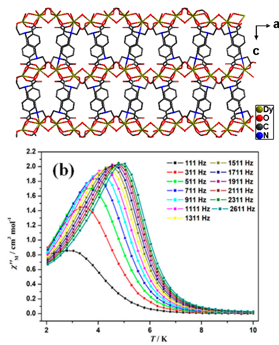 配合物磁性材料以其信息存储、光电可调等优点,在高密度信息存储、光电子器件及医疗等领域展现出巨大潜力和应用价值。在未来材料领域中占据着举足轻重的地位。然而,磁性配合物材料中较低的磁相变温度,给磁性材料的实际应用造成技术瓶颈,如何提升磁相变温度是当今磁性配合物材料研究的巨大挑战。金属-有机框架(MOF)材料凭借其分子级可定制调节的结构和性能,在先进光、电、磁功能材料的开发中备受关注。基于对MOF设计合成的经验积累,研究小组提出了一种构建具有多羧酸和稀土金属Dy3+离子的MOF分子磁体的策略,并成功合成了一例新型Dy-MOF材料。该材料实现了较高的结构热稳定性和一定的慢磁弛豫功能。材料结构中形成的微孔有望作为主体分子吸纳客体分子,达到调控分子性能的目的。这一配合物材料的合成为可调控分子磁性材料的设计提供了借鉴,有望在磁性器件材料方面发挥重要作用。