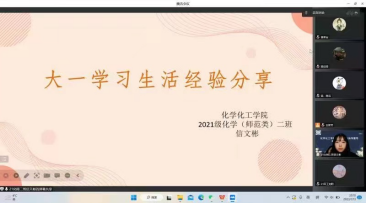 为帮助2022级学生做好寒假期间的学习实践活动,更好的规划大学生活,养成良好的学习习惯,明确大学四年的奋斗目标,国产日韩欧美小视频于2023年1月13 日晚19:30举办2022级学业指导活动,活动邀请了2021级优秀学生代表进行学习经验交流分享。学院分管教学负责人、年级辅导员、院教学秘书出席了此次活动。