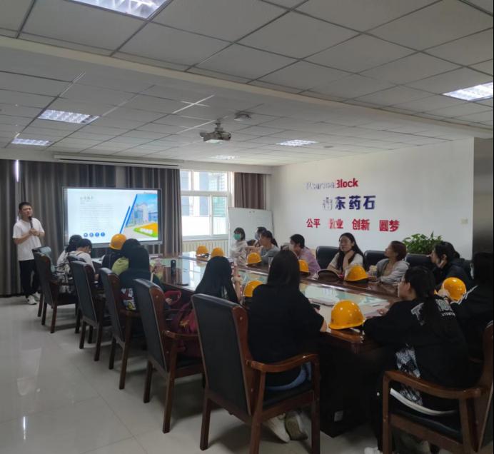 抵达山东药石药业有限公司后,在公司三楼会议室召开了欢迎会,公司副总黄海霞对同学们的到来表示热烈欢迎。她表示,希望同学们通过这次实习,对医药中间体合成、山东药石药业有一个更加全面、更加深入的认识,也随时欢迎各位同学来山东药石就业、创业。随后,公司人力资源部经理刘昊、德州学院国产日韩欧美小视频2015届校友研发部主任陈程,德州学院国产日韩欧美小视频2014届校友安全主管谷雨围绕公司情况、项目建设、产品工艺流程、安全注意事项、发展规划等五个方面向大学生们做详细讲解。
