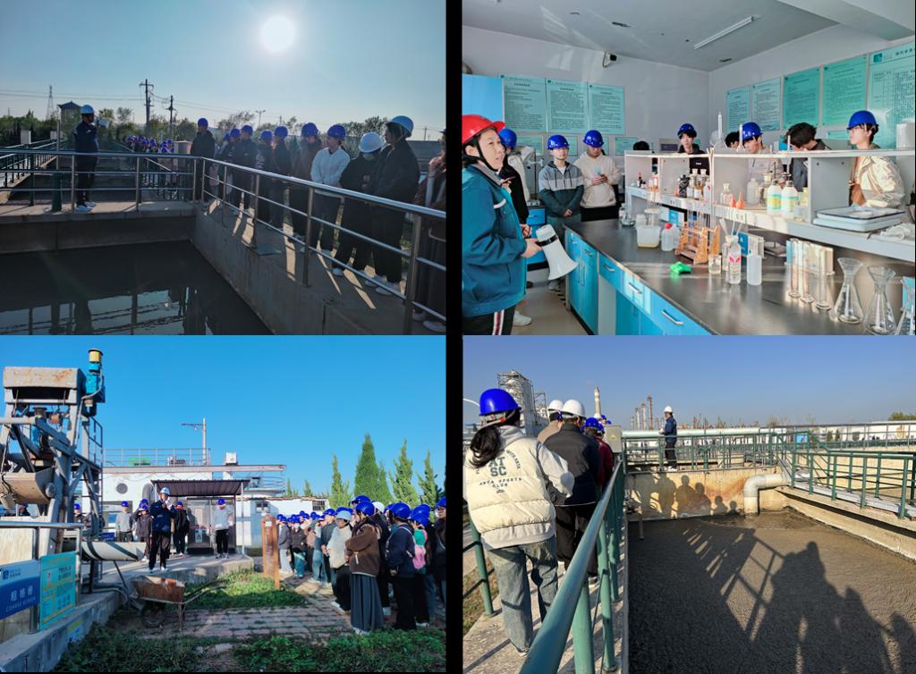 在王芳、杨飞、赵舒曼、庞绪良四位带队老师的组织下,学生进入进行现场实习。卓澳技术人员给同学们介绍了企业生产概况,讲解了该单位主要采用AAO(厌氧-缺氧-好氧)工艺进行污水处理,经该工艺处理后的污水可达到《城镇污水处理厂污染物排放标准》(GB18918-2002)一级A排放标准。随后技术人员带领同学们到污水处理现场,详细介绍了污水处理过程中各个环节的原理与相应构筑物的结构特点,运行生产过程中的常见问题以及解决方法等。