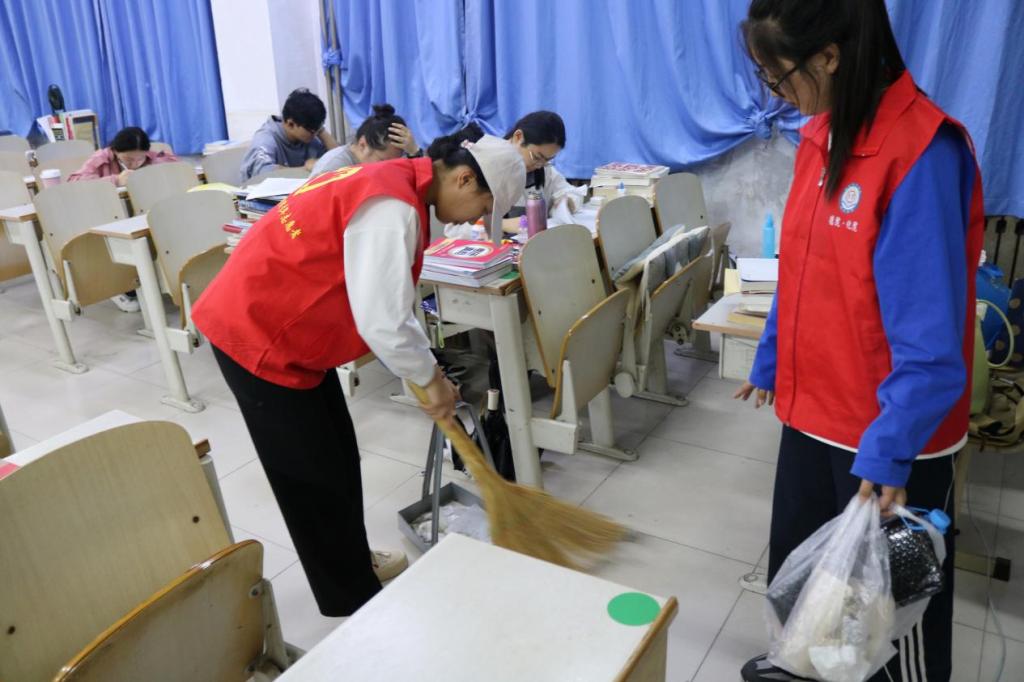 为构建和谐友好、洁净美丽的校园,创建良好的学习环境,进一步提高我院学子的劳动服务意识,10月18日,国产日韩欧美小视频组织青年志愿者开展打扫考研教室和清理教室白板志愿活动。