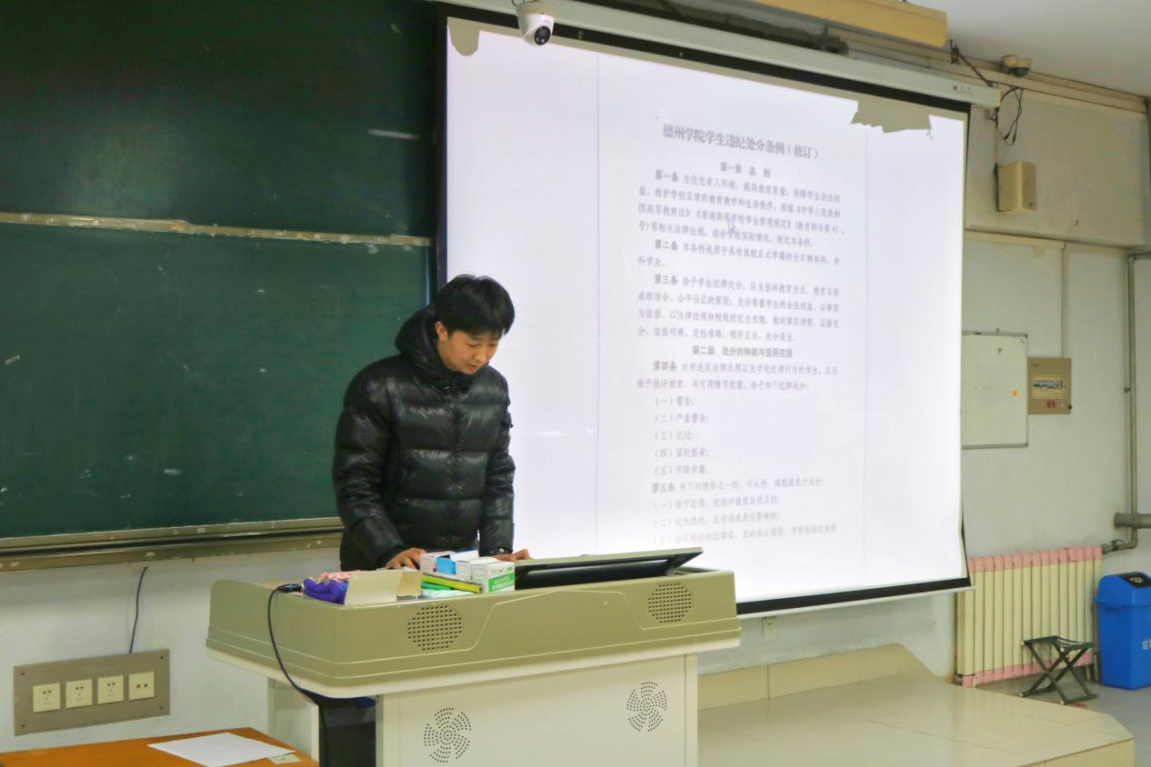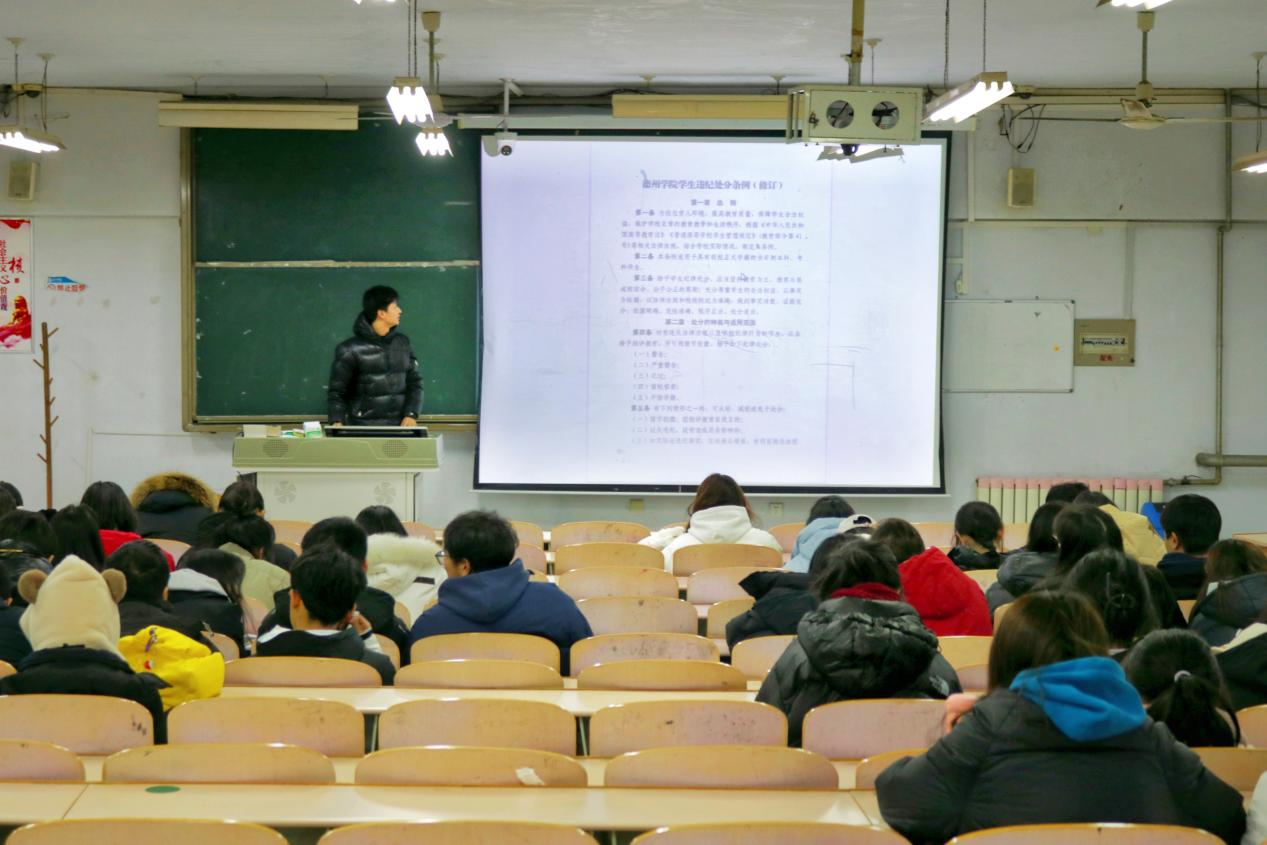 会上,主讲人领学了《德州学院学生违纪处分条例》,明确了学校对学生违规行为处理的程序和原则。会议重点强调学生干部要全面、深入地理解学校规章制度对自身成长的意义,以身作则、严于律己,自觉遵守校规校纪,严肃纪律,坚持诚信考试,秉承对考试作弊行为“零容忍”的态度,变“他律”为“自律”,引领风清气正的考试风尚。