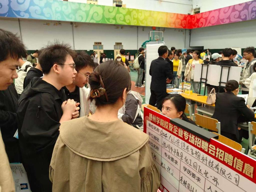 本次招聘会吸引了山东恒东生物科技有限公司、信诺立兴(黄骅市)集团股份有限公司等100余家单位参会,来自化工、材料等多个领域的校友企业带来丰富的岗位资源,涵盖研发、生产、技术、管理等多个类别,满足了不同专业学生的就业需求。毕业生手持简历,主动了朱训焜、侯佳慧解企业发展历程、岗位要求、薪资待遇、晋升空间等信息,积极与企业招聘人员沟通交流。校友企业向毕业生介绍企业概况与招聘需求,耐心解答同学们的疑问。学院院长、党委副书记、毕业班辅导员与校友企业代表深入交流,了解行业人才需求和企业发展趋势,共商校企协同育人新路径。