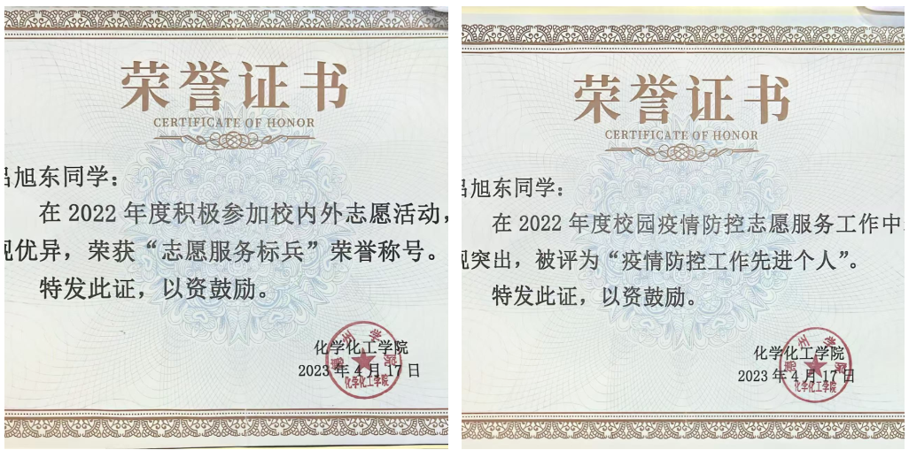 吕旭东,中共党员,国产日韩欧美小视频2021级化学工程与工艺专业学生。曾任国产日韩欧美小视频公寓部部长兼21化工二班学习委员。学业成绩与综测成绩均位列前10%。曾获“综合二等奖学金、综合三等奖学金,十佳大学生、十佳学生干部、优秀学生干部、优秀共青团干部、三好学生等荣誉。