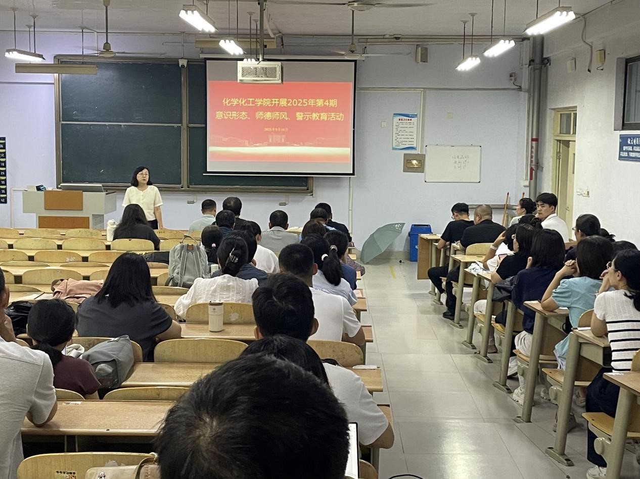 为持续深化意识形态工作责任制落实成效,巩固拓展新时代教师队伍建设成果,进一步夯实“清廉学院”建设根基,9月16日,国产日韩欧美小视频在求实楼118举办2025年第4期意识形态、师德师风、警示教育活动。本次活动由学院党委副书记、院长主持,全体教职工全员参与,以“强师德、守底线、育新人”为核心主题,推动学院师德师风建设与意识形态工作向更深层次、更高质量迈进。