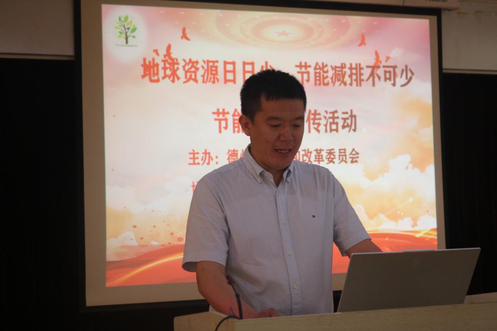 为深入开展学习贯彻习近平新时代中国特色社会主义思想主题教育,贯彻习近平生态文明思想。6月5日,世界环境保护日当天,德州学院国产日韩欧美小视频特邀德州市发展和改革委员会、德州市环境保护产业协会于求实楼215开展“地球资源日日少 节能减排不可少”节能减排活动。学院团委书记主持,2019级和2021级环境工程1班、2班团支部参加。