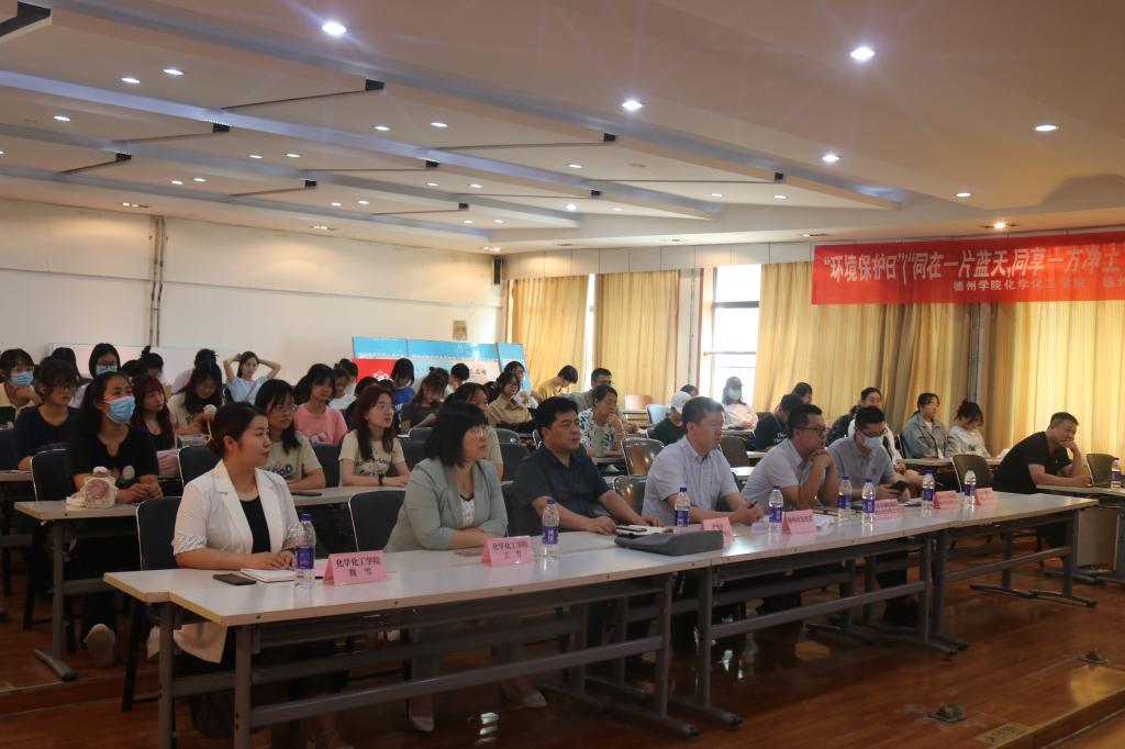围绕“地球资源日日少,节能减排不可少”主题,德州市发展和改革委员会科长杨志致辞,介绍德州市环保产业发展状况及趋势,鼓励同学们培养创新精神,努力学好知识,争取投身环保行业,为环保事业发展贡献青春力量。德州环保产业协会秘书长田松林致辞,表示环境监测、环境影响评价等在企业生产中的重要地位,青年学生在环境保护中承担着重要使命。德州天洁环境影响评价有限公司、德州广源环保科技有限公司、山东金诚检验检测认证有限公司三家环保行业标兵企业分别介绍企业的运行情况及对环保人才的需求,鼓励同学们学知识,长本领,增见识,为国家的环保事业作出贡献。