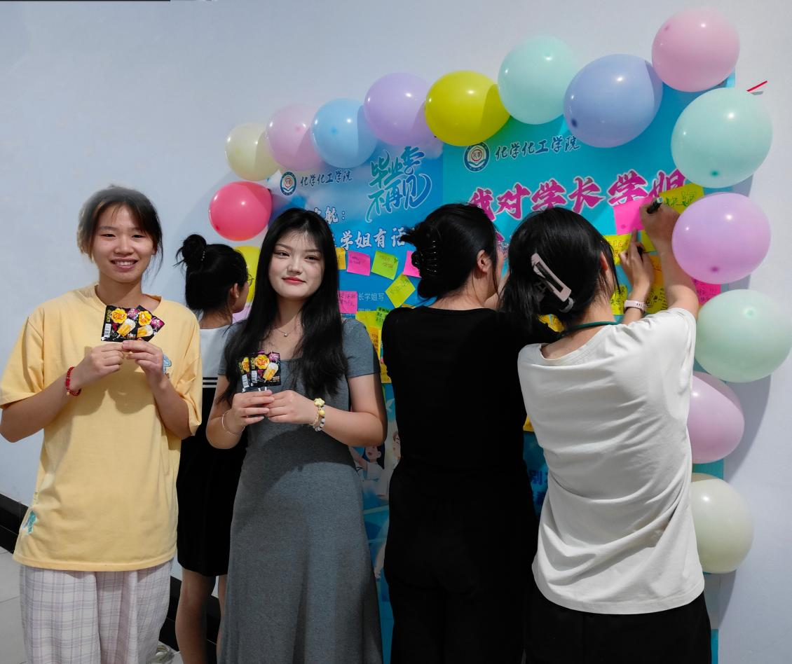 活动现场,学院精心准备了便签和马克笔,邀请同学们写下对毕业生的祝福语和鼓励话语。内容言辞恳切,表达了对毕业生深厚的不舍与美好的祝愿;有的则发挥创意,用生动的图案传递出对毕业生未来生活的美好期许。同学们纷纷驻足,或沉思或挥笔,将自己的心意化作文字,贴在特制的易拉宝上,形成了一道独特的风景线。现场还准备了开心糖果作为礼物,这份简单而贴心的礼物,不仅让毕业生们感受到了学院的关怀,也为他们的毕业季增添了一份甜蜜的回忆。活动结束后,易拉宝上贴满了密密麻麻的便签,每一张都承载着同学们的真挚情感。这些祝福和鼓励不仅是一份宝贵的毕业礼物,也将在他们未来的人生道路上,激励他们勇往直前,创造更加辉煌的未来。