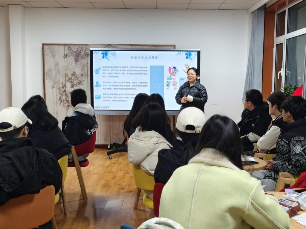 活动伊始,心理咨询师宋洁茹老师详细介绍了考前压力的应对策略,为同学们提供了许多应对压力的“干货”,助力他们更加从容地面对备考压力。随后,伴随着轻缓的音乐,现场学生共同参与减压小游戏“击鼓传橘”,象征着祝福的金橘在同学们手中传递。当音乐戛然而止时,拿到金橘的同学与大家分享考研减压妙招。大家在欢声笑语中相互学习借鉴,释放紧张情绪。