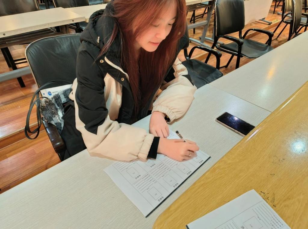 在此次活动中,学院组织宿管部学生为考研学子统一办理考研证件,大家分工有序,积极开展工作。信息收集阶段,他们利用今日校园线上收集考研学子信息,为考研学子提供高效便捷服务。誊写信息时,他们仔细核对,严格遵循规范,不容许丝毫差错。这一系列高效且严谨的办理流程,切实节省了考研学子的时间,让学子们能够心无旁骛,全力冲刺。