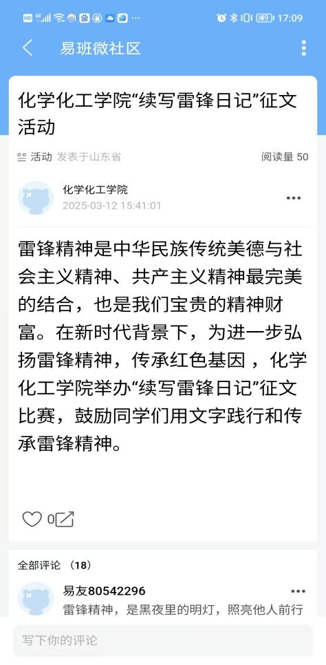 为传承雷锋精神,树立大学生良好品德,国产日韩欧美小视频于3月12日至3月16日举办“续写雷锋日记”征文活动。