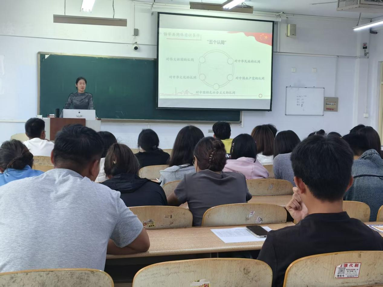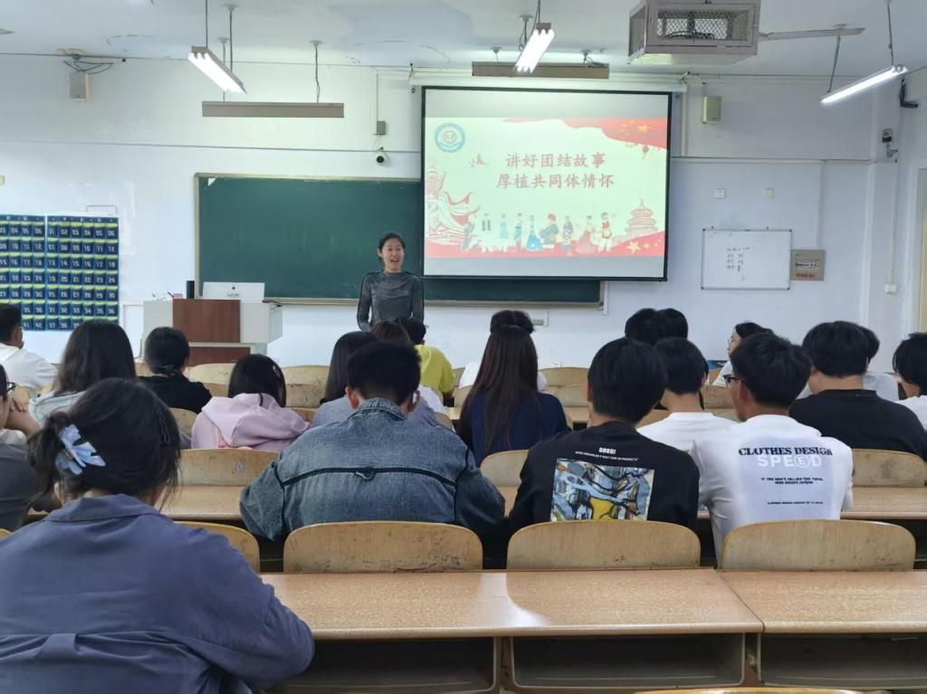 课堂上,辅导员围绕“什么是中华民族共同体意识”“铸牢中华民族共同体意识的重要意义”“实践路径与时代要求”等核心内容,系统阐述了中华民族共同体意识的深层内涵与现实价值。她指出,中华民族共同体意识是民族团结之本,是维系国家认同和民族情感的重要纽带,更是实现中华民族永续发展的力量源泉。她强调,要牢固树立休戚与共、荣辱与共、生死与共、命运与共的共同体理念,在“四个共同”的指引下积极构建反映中华民族共同体形成与发展的正确话语体系,为实现民族复兴奠定思想基础。