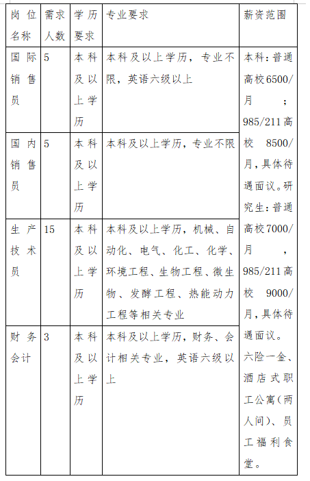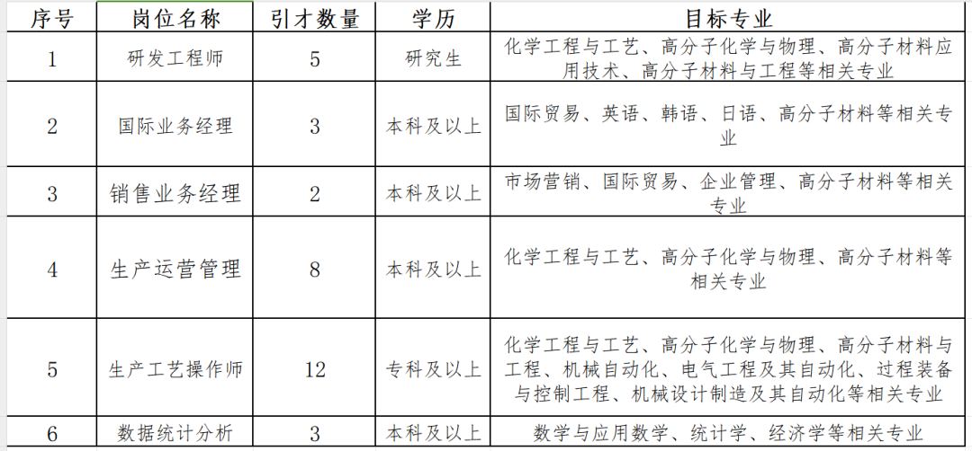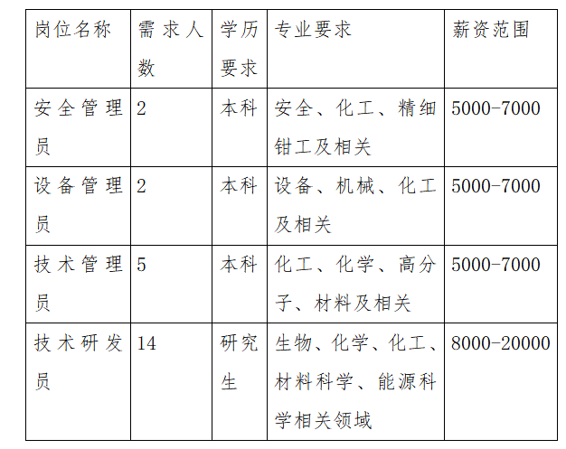 (1)招聘岗位: