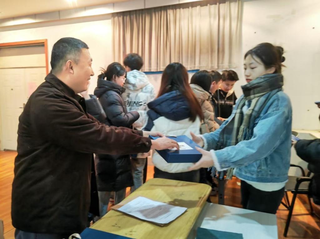 活动上,学院党委副书记向毕业生们表达了殷切的期望,鼓励毕业生保持积极心态,不惧挑战与挫折,充分发挥专业优势,积极就业,争取早日踏入理想岗位。此外,学院还精心定制了文创礼盒及祝福明信片,组成就业暖心礼物,由学院党委副书记和毕业班辅导员亲手将礼物送到毕业生手中,并与毕业生亲切交谈,询问就业准备情况,给予针对性的指导与建议,表示学院会持续为毕业生提供就业支持与帮助。