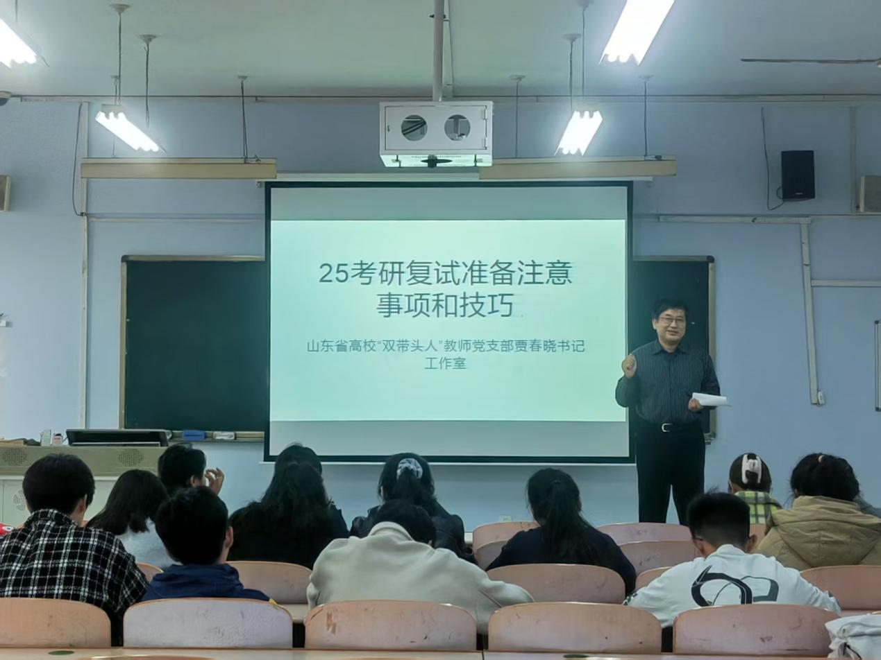 2月24日,2025年考研成绩和国家线同时公布,国产日韩欧美小视频2021级化学专业考研上线率连续多年超过40%,为了提高学生复试成功率,第二批全省高校“双带头人”教师党支部书记工作室培育创建单位,国产日韩欧美小视频第一教师党支部贾春晓书记工作室“想学生之所想,急学生之所急”,提前筹划、精心组织,于3月1日下午在求实楼301教室举办了一场题为“25考研复试准备注意事项和技巧”的讲座。
